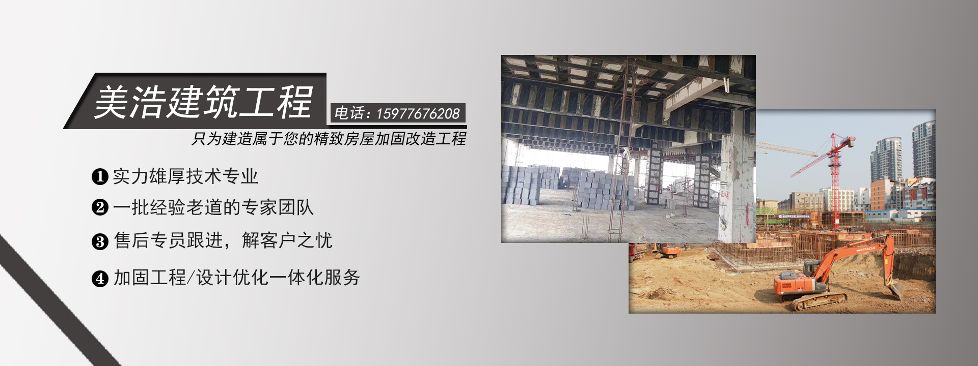 廣西美浩建筑工程有限公司,位于千年古縣,十載新區(qū)的廣西省南寧市邕寧區(qū)。注冊資金1080萬元,是一家專業(yè)提供鋼筋混泥土切割,水下切割、加固、植筋、鉆孔、補強、切割加固、房屋切割加固/破碎拆除、橋梁切割加固/破碎拆除、建筑切割加固/破碎拆除等特種工程。美浩建筑擁有專業(yè)的施工團隊和齊全的設(shè)備為基礎(chǔ),保障客戶項目按質(zhì)按量的順利完成。公司長期與中鐵四局、中鐵建、中交、中建等建筑集團合作。目前公司擁有設(shè)備:繩鋸切割機,馬路碟鋸機,水鉆機,風(fēng)炮機,挖機,鉆孔機等特種設(shè)備。